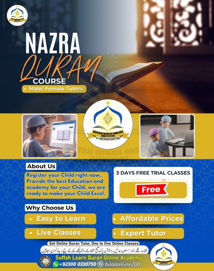 ✅ Here’s a breakdown of what’s involved in learning Quran Nazra with Tajweed: